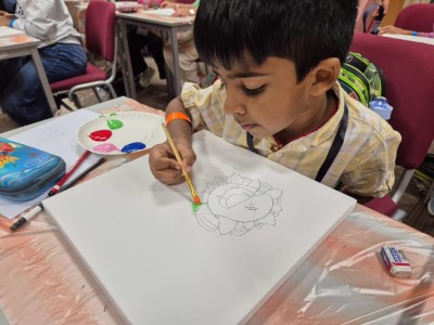 that introduced them to a variety of art forms. Students explored Mandala Art, Lippan Art, Tote Bag